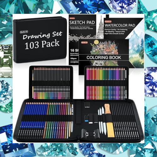 Shuttle Art 色鉛筆 103点 デッサン 鉛筆セット 水彩色鉛筆 油性色鉛筆 メタリック色 スケッチ イラスト 落書き 消しゴム・水彩紙・大人