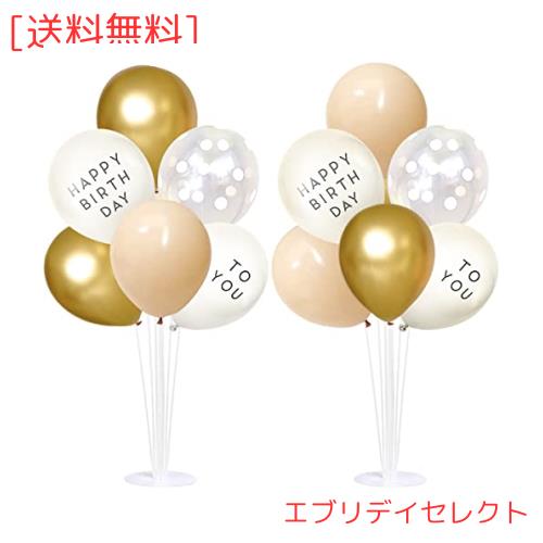 ?バルーンスタンド2台&風船セット??70cmバルーンスタンドx2台 ?メタリックゴールドバルーンx5個 ?肌色バルーンx5個 ?透明色の水玉バルーンx3個 ?「Happy Birthday 」「To You」文字バルーン各3個※誕生日バルーンスタンド2台が作れます。
