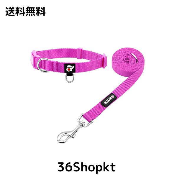 ◆商品名:azuza ナイロン犬の首輪と革のセット、丈夫で耐久性のあるベーシックなIDマークリング付き革の首輪、中型犬用の長さ、パープル、M