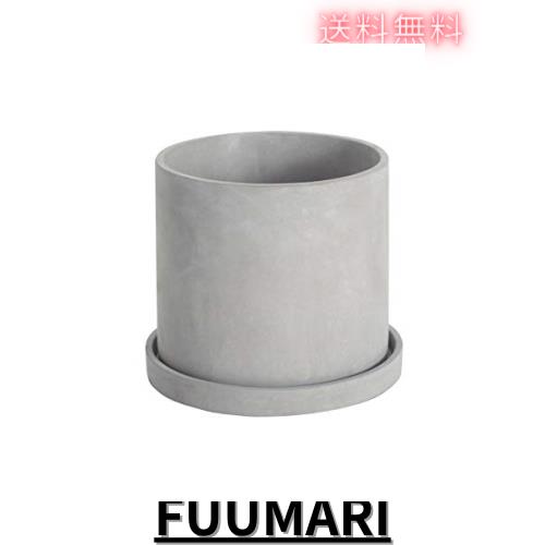 ◆商品名:Ekirlin 植木鉢 セメント 鉢 受け皿付き 観葉植物 円筒形鉢 プランター 6号 16.5cm おしゃれ コンクリート 底穴あり シンプル グレー