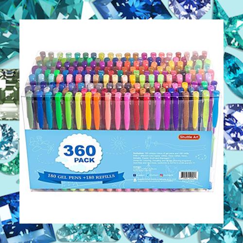 ジェルペン360本セット、シャトルアート 180色ゲルペンセットに加えて、180色リフィル、大人の塗り絵、落書き、描画アートマーカーに最適。