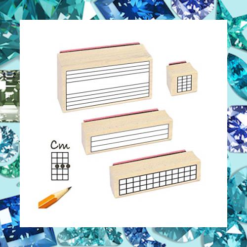 ウクレレとベースを教えている先生、学んでいる生徒、ミュージシャン必見!教えるのにも、学ぶのにもピッタリな時間短縮秘訣スタンプ!楽譜やノートにこのスタンプを押すだけで、すぐにどこででも五線譜に音符を、タブ譜に番号を書き込むことができます。これで多くの時間を削減できます!本体は手触りの良い木製でできていますので、安心してお使いいただけます。