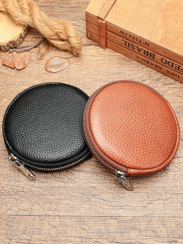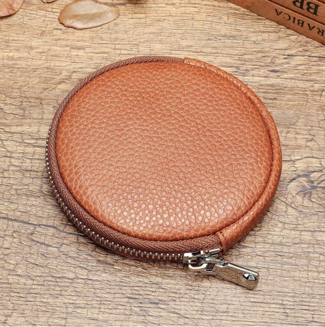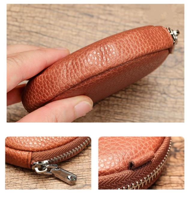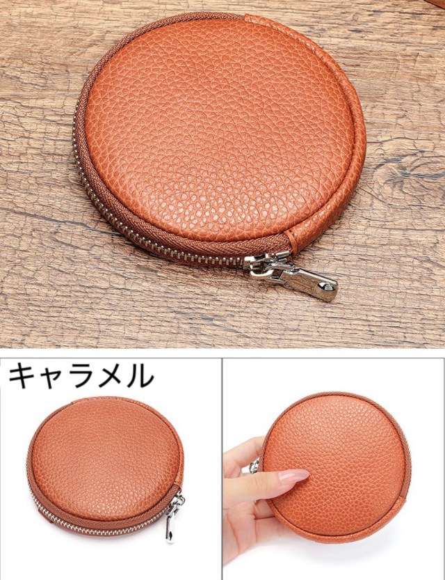 丸型コインケース ポーチ 本革 ファスナー おしゃれ レディース メンズ ポーチ 小物入れ シュリンクレザー小銭入れ 小さい 可愛い 財布 薄型 軽い 使いやすい レザー ラウンド コイン入れ ミニ財布 プレゼント ギフト