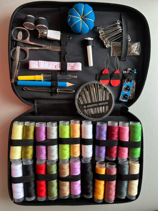 【便利】必要なものは全部揃った。衣服、ぬいぐるみ、ワイシャツのボタンつけなどの直し場面で使い勝手がよい裁縫セットである。収納ケースもあるから、自宅だけではない、旅行、出張、キャンプなどおでかけの場合も使える。