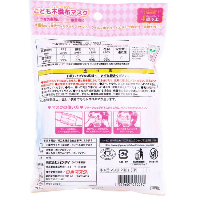 【メール便送料無料】マスク 不織布マスク 子供用 こども不織布マスク ディズニー プリンセス キャラマスク 10枚入 ピンク