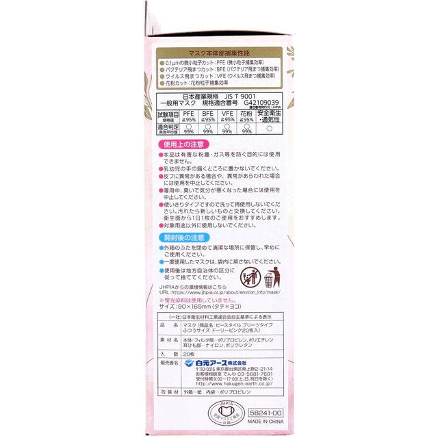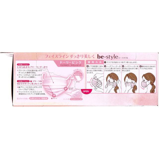 マスク 不織布 ビースタイル 小顔に魅せる プリーツタイプ ふつうサイズ ドーリーピンク 20枚入