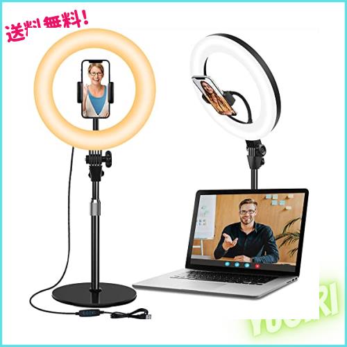 10インチLEDリングライト Yarrashop パソコン 女優 卓上 ライト付き付スマホスタンド 自撮り デスクパソコン 読書灯 撮影照明用ライト テ