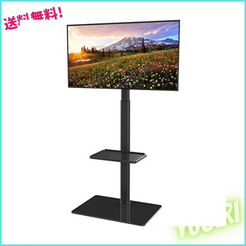 Hemudu ユニバーサルフロアTVスタンド(19〜42インチフラットスクリーンTV用マウント、100度回転、高さおよび傾斜機能の調節可能、2つの棚
