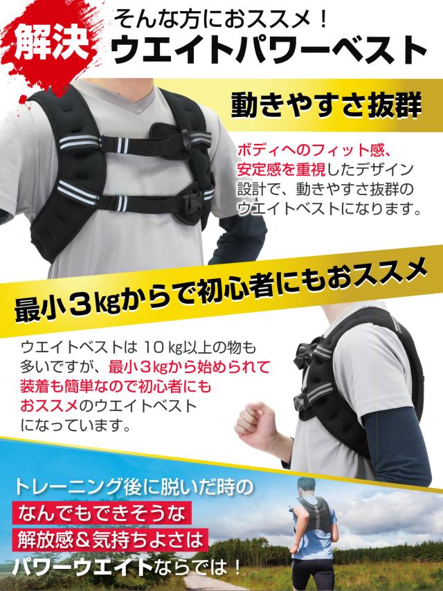 ウエイトベスト ランニング コンパクト 3kg パワーベスト ウエイトジャケット ウェイト パワー 筋トレ 体幹 重り 加重 ベスト トレーニング ジム 腹筋 負荷運動 スポーツ ウォーキング