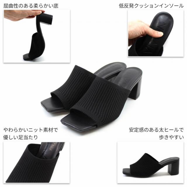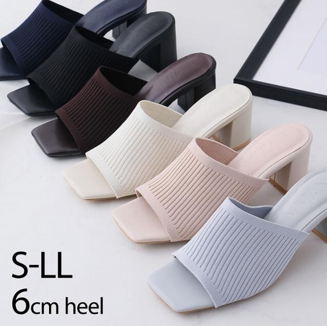 【MAX10%OFFクーポン】 サンダル レディース 夏新作 ミュール 6cm チャンキーヒール つっかけ ブラック 黒 白 痛くない 歩きやすい 疲れない キレイめ V65021SM