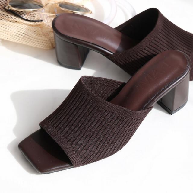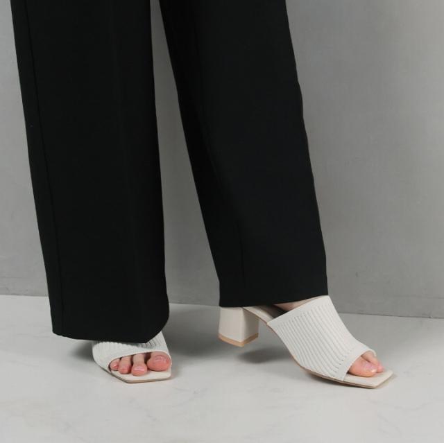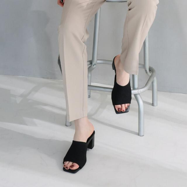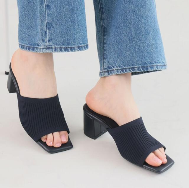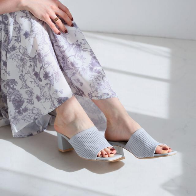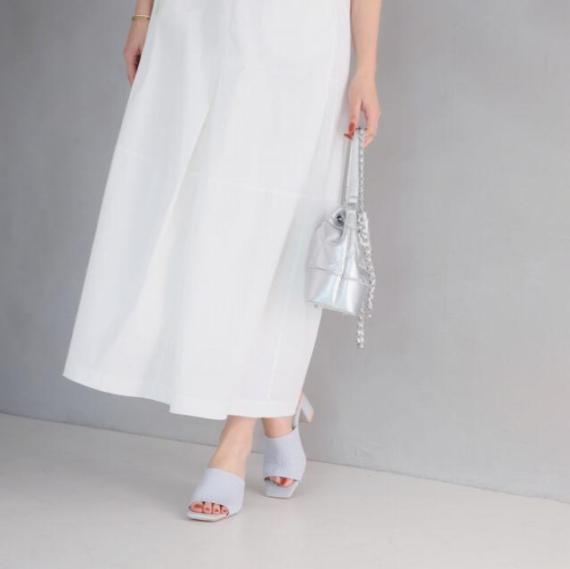 ・オープントゥで適度な肌見せと存在感のあるブロックヒールでスタイルアップした大人っぽい夏に映える足元に。