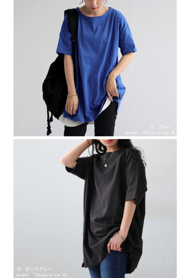 zma-00006 綿100 カットソー ラウンドネック 丸首 ゆったり シンプル プルオーバー インナー 重ね着 レイヤード 半袖Tシャツ 綿 コットン 着回し 大きめ 大きいサイズ サイズ展開