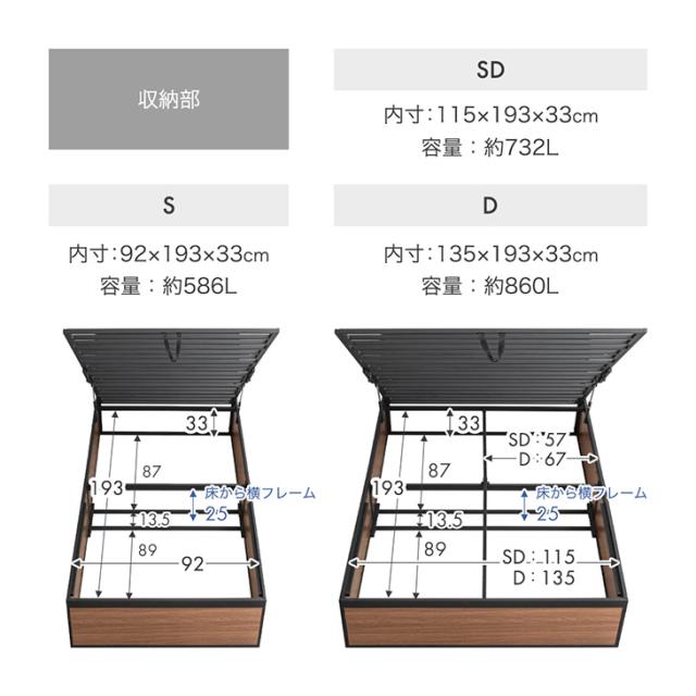 収納部:幅135×奥行193×高さ33cm(約860L)
