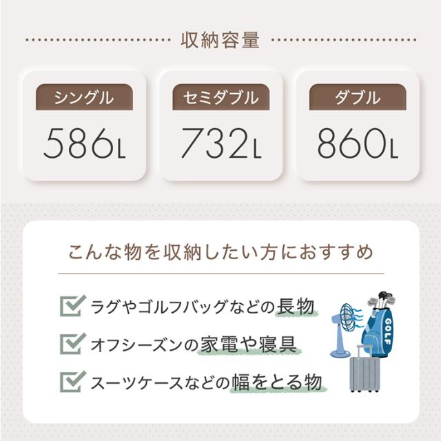 収納部:幅92×奥行193×高さ33cm(約586L)