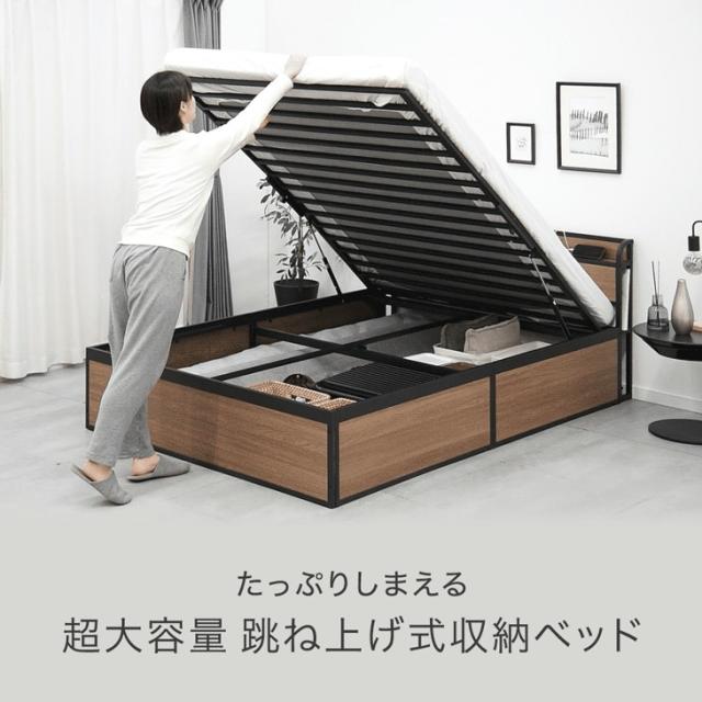 跳ね上げ収納ベッド シングル 大容量 2コンセント 宮棚 収納ベッド ガス圧 跳ね上げ ベッド 跳ね上げ式ベッド スチールベッド リフトアップベッド 収納付きベッド ベッドフレーム 宮 棚 収納 収納付き スチール おしゃれ