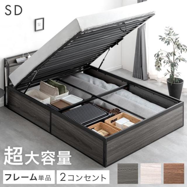 [即納] 跳ね上げ収納ベッド セミダブル 大容量 2コンセント 宮棚 収納ベッド ガス圧 跳ね上げ ベッド 跳ね上げ式ベッド スチールベッド リフトアップベッド 収納付きベッド ベッドフレーム 宮 棚 収納 収納付き スチール おしゃれ