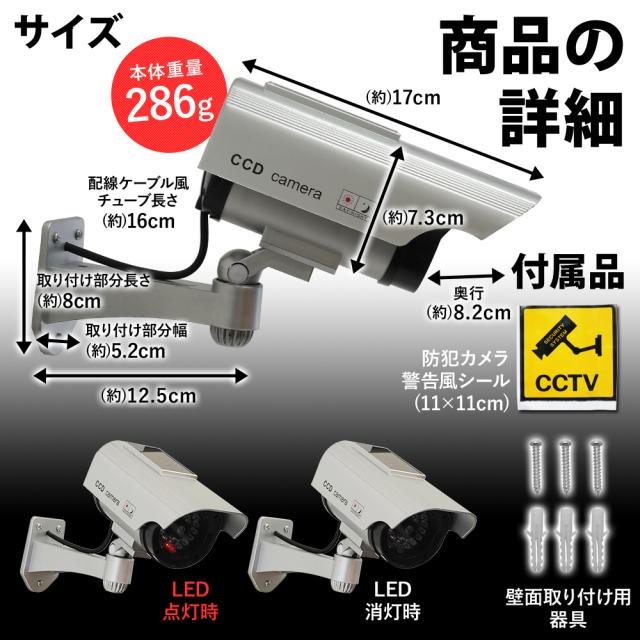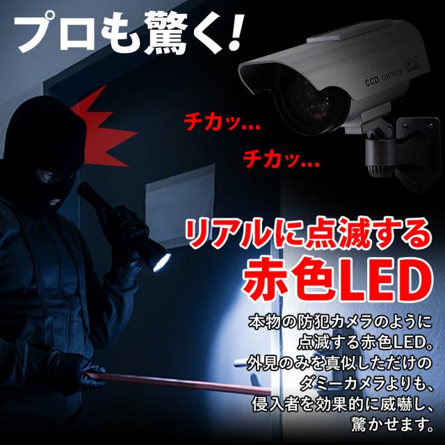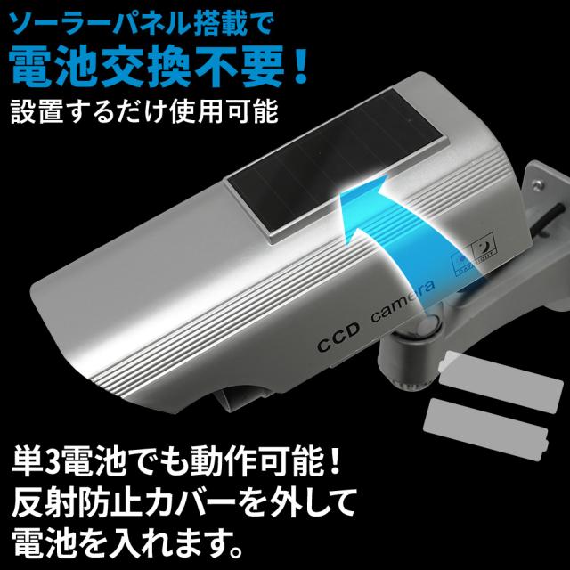 ダミーカメラ 防犯カメラ 屋外 屋内 ダミー 監視カメラ 常時点滅 LED点滅 ソーラー 乾電池 両用 電源 ダミー防犯カメラ セキュリティ 防犯対策 防犯カメラ 空き巣 泥棒 侵入対策 工事不要