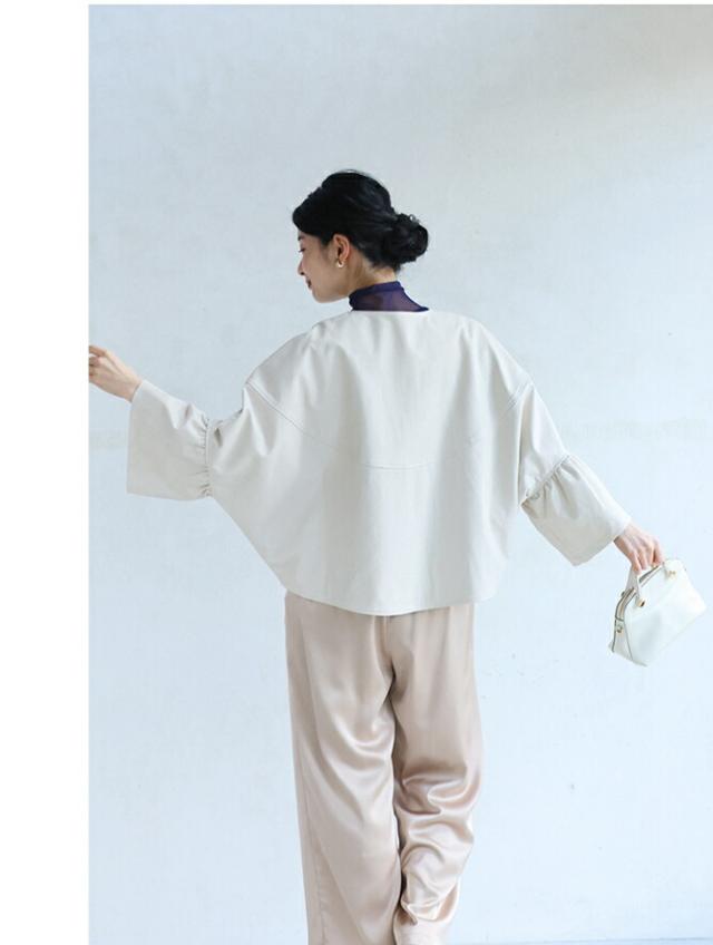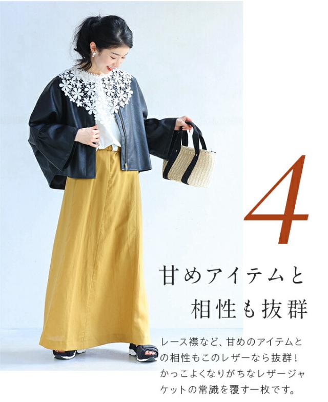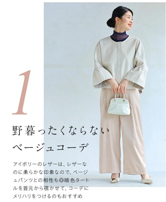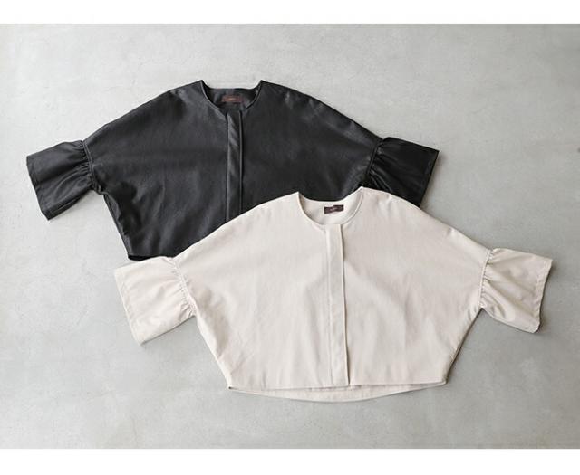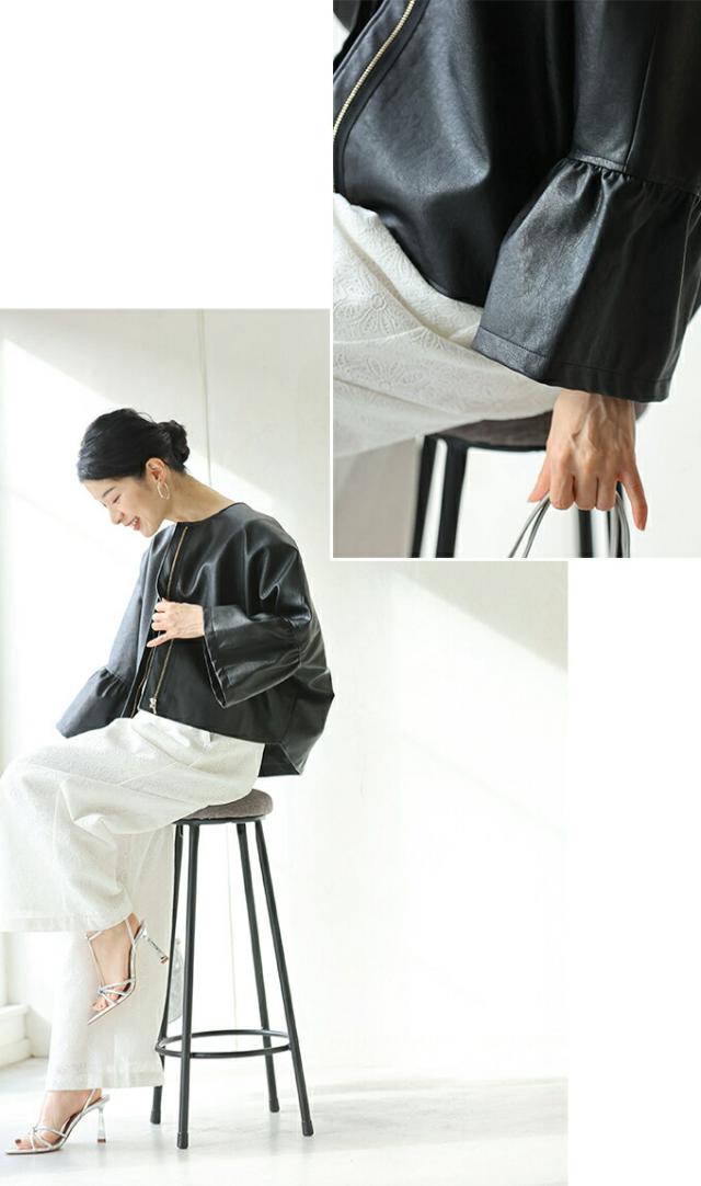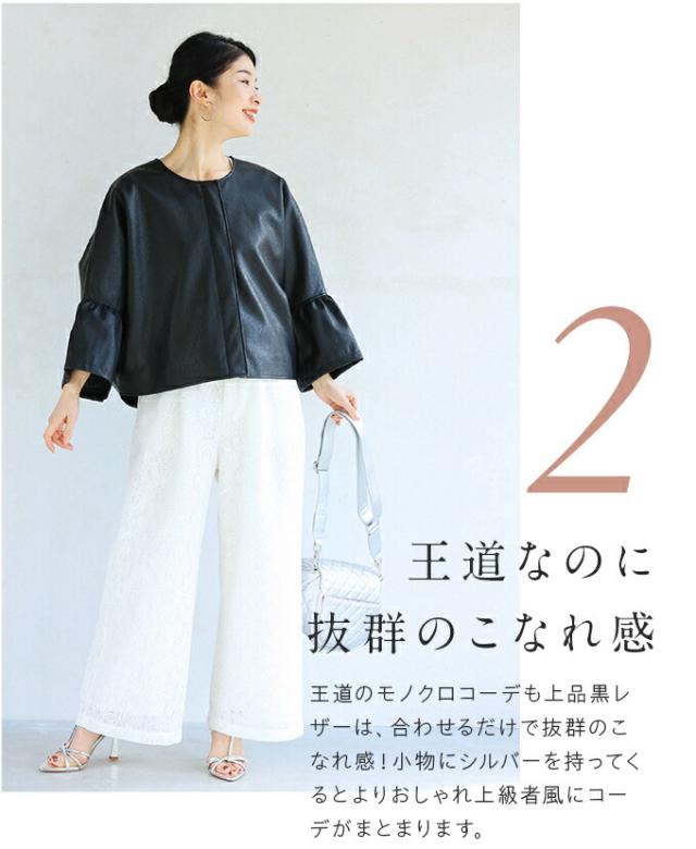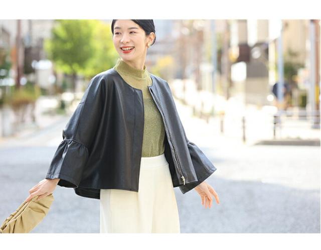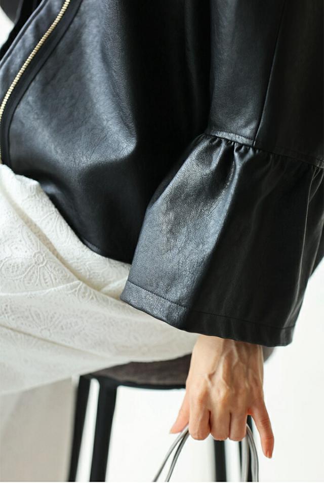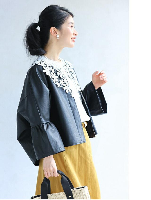 fbk00041od 新作 新着 再入荷 CAWAII FRENCHPAVE フレンチパヴェ エレガント ベーシック カジュアル 可愛い かわいい カワイイ おしゃれ オシャレ お洒落 個性 個性的 定番 ベーシック 大人かわいい 大人可愛い 上品 女性らしい デザイン スタンダード ナチュラル きれいめ キレイめ シンプル フェミニン レディース レディースファッション 大人 ママ ミセス 30代 40代 50代 60代 ハードになりすぎない フリル袖 エコレザー 羽織り 軽アウター ジャケット アイボリー ブラック 黒 黒色 ワンカラー ワントーン 春服 春物 S M L 2L LL XL 3L LLL XXL フリーサイズ フリー 小さめ 小さめサイズ小さい 小さいサイズ 低身長 痩せ ほっそり 小柄 細身 標準サイズ 大きめシルエット 大きい 大きめ ビッグシルエット ぽっちゃり F サイズ自由 日常着 普段着 日常使い ヘビロテ 短め丈 体型カバー