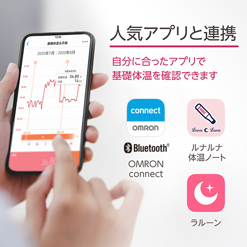 ※体温計の設定および「ルナルナ 体温ノート」「ラルーン」アプリを利用の際は、OMRON connectのインストールが必要です。