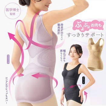 ![]() ![]() ![]() ![]() ![]() ![]() ![]() ![]() ![]() ![]() 骨盤と姿勢を同時にサポートするインナーでするんとキレイ! ■着ている間、姿勢と骨盤をケアするソフトな着心地のサポートインナー ■ブラジャー+キャミソール+補整下着がこれ一枚で ■砂時計型シルエットが着用時の体のラインを滑らかに整えます ■段差が出にくい脇高設計でシルエットスッキリ ■全方向360°やさしく包み込んで苦しくない ■後下がりのロング丈でお尻まですっぽり ■伸縮性抜群、蒸れにくく吸水速乾性に優れた特殊繊維使用 |