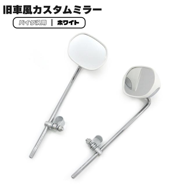 バイク 汎用 旧車風ミラー 左右セット ホワイト×メッキ 当時物タイプ 新品 レトロ 旧車 モンキー ゴリラ GT380 GS400 カスタムパーツ