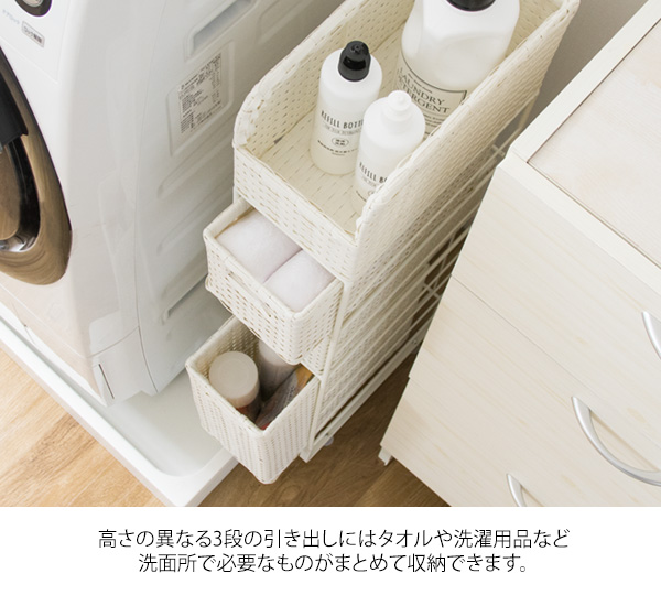 ランドリーチェスト 3段 完成品 スリム 薄型 幅15cm おしゃれ ラタン調 洗面所 すき間収納 ランドリーラック 防水パン またげる ランドリー収納 デッドスペース 収納 洗濯機 狭い 洗面所 収納 脱衣所 収納 棚 洗濯機横収納 省スペース 奥行30cm 高さ83cm 一人暮らし 隠す収納 インテリア 収納家具 ランドリーラック 段差対応 隙間 収納 洗濯機横 洗濯機 隙間収納 すきま収納 タオル 洗面所 収納 狭い 脱衣 所 タオル 収納 洗剤 柔軟剤 バスタオル 入浴剤