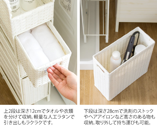 水に強く通気性の良い人工ラタンで使い勝手も良く、毎日の洗濯が快適になること間違いなし。