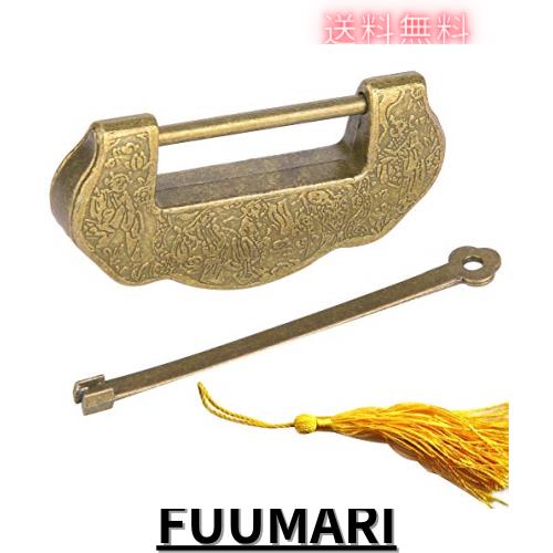 南京錠 アンティーク調 ロック 中国風 明と清時代スタイル 亜鉛合金 鍵付き 花紋 文字 印刻(#2)
