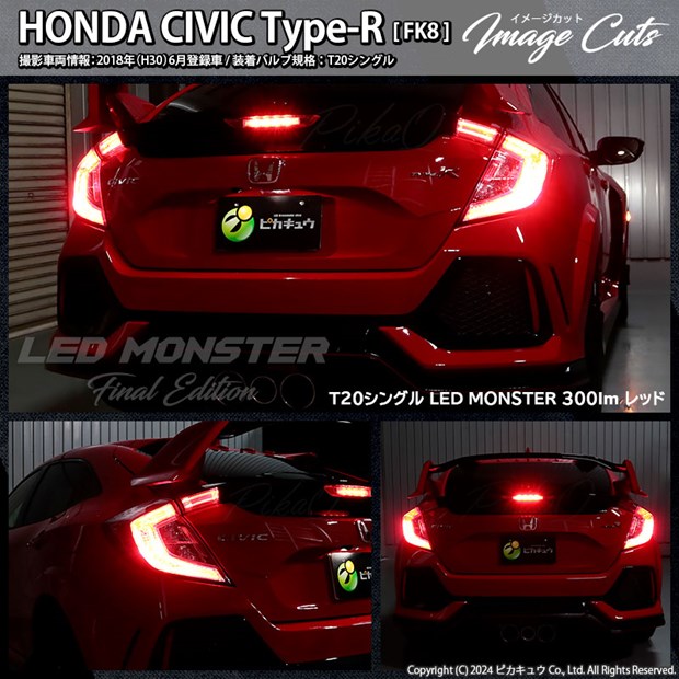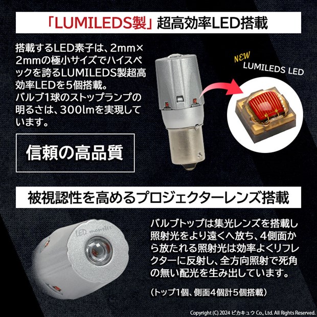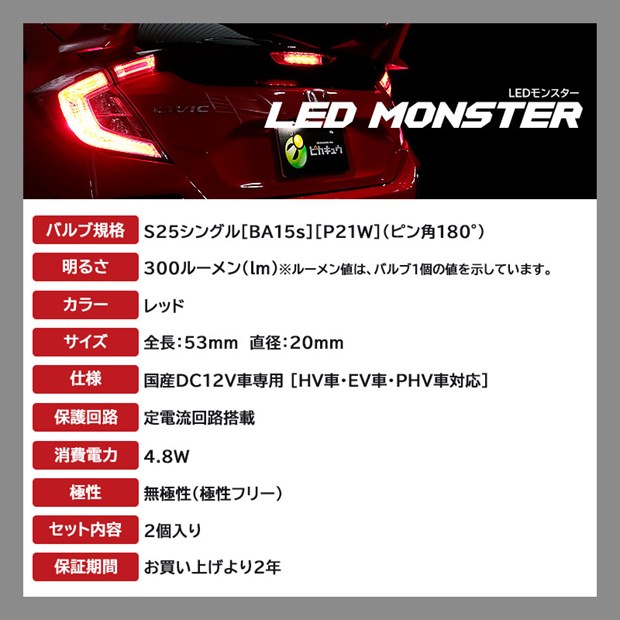 ピカキュウ,LED専門店ピカキュウ,LED,リアフォグランプ,ストップランプ,LED MONSTER,LEDモンスター,s25,S25シングル,ピン角180°,ba15s,p21w,赤色,レッド