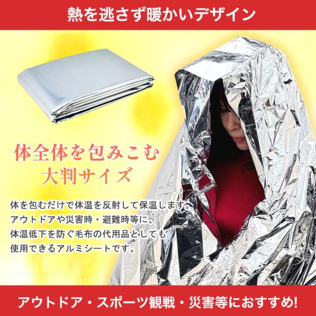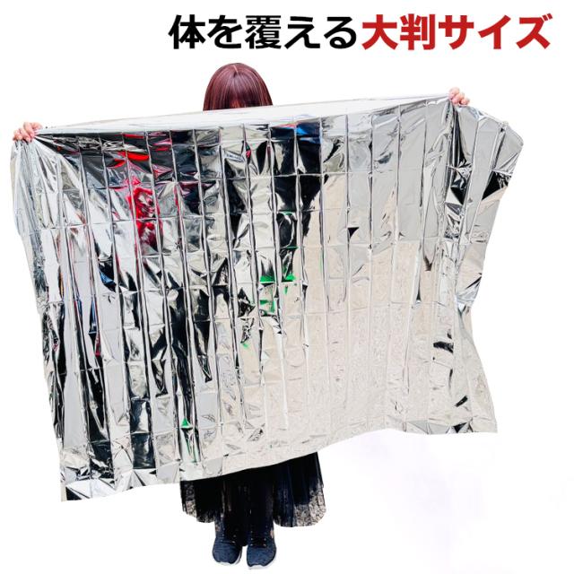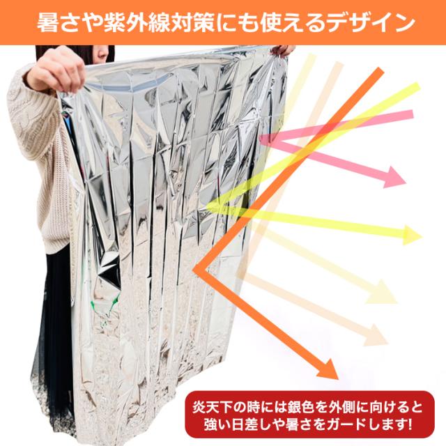 ★保温効果が高い!アウトドア 非常用 防寒シート 目隠しシート 簡易トイレ 地震 災害 避難グッズ 防災グッズ に欠かせない防寒アルミシート軽量でコンパクトなアルミブランケ ットです。風を通しにくく、断熱効果の高いので防寒性に優れています。