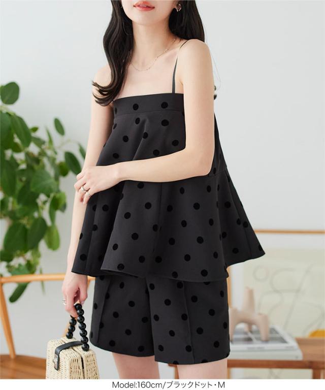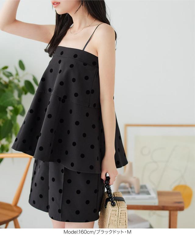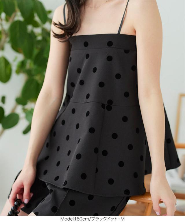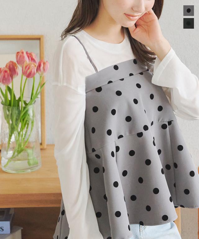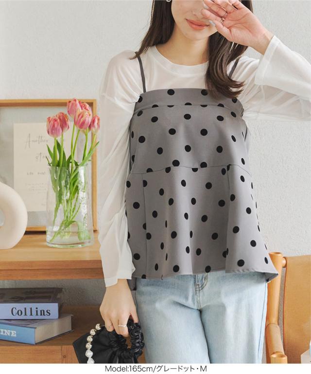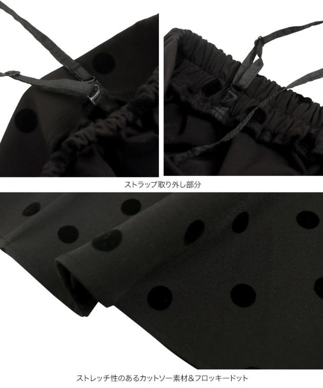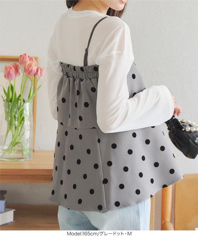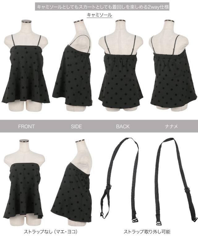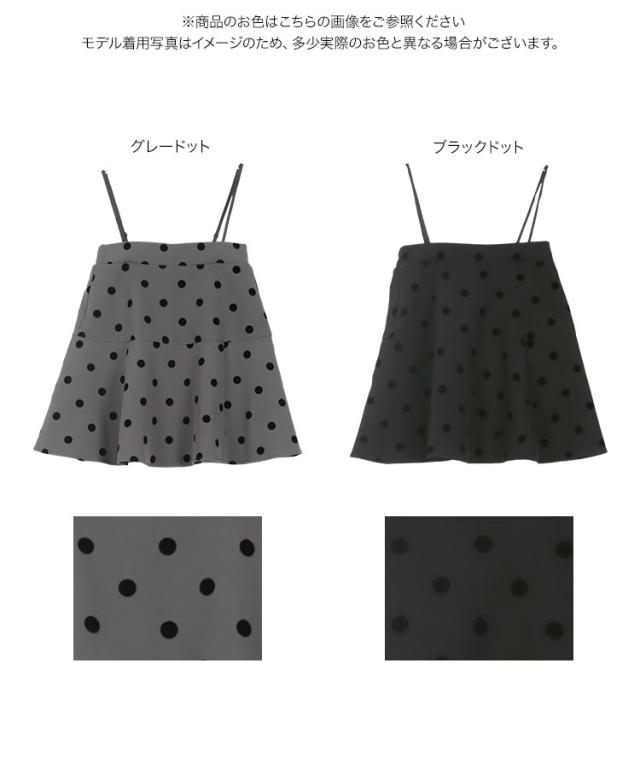 春新作 スカートにもなる2wayフロッキードットペプラムキャミトップス C7067 入荷済レディース ドット柄 水玉 キャミソール ストラップ ペプラム フロッキー ベア ベアトップ ノースリーブ スカート ミニスカート フレアスカート グレー