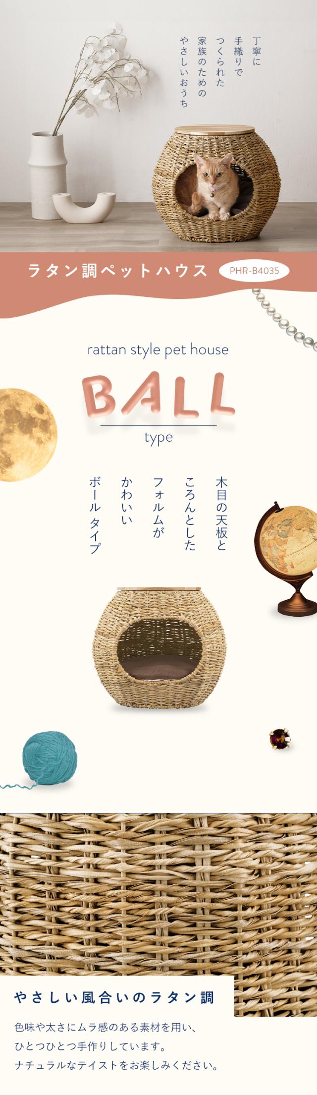 夏は涼しく冬は温かみのあるラタン調ペットハウス【ボールタイプ】です。