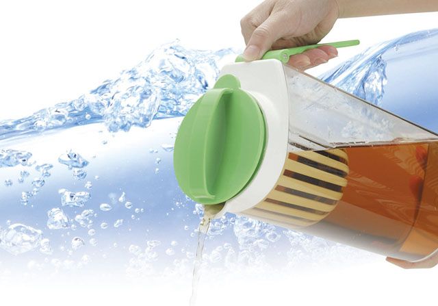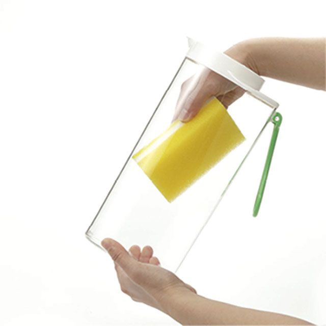 取っ手が折りたたみでき、場所を取らないスマートな冷水ポットです。