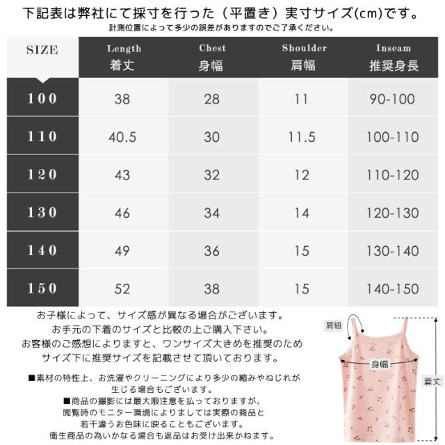 送料無料/ 子供 キャミソール 1枚組 下着 女の子 肌着 タンクトップ 綿95% キッズ インナー 女児 80 90 100 110 120 130 140