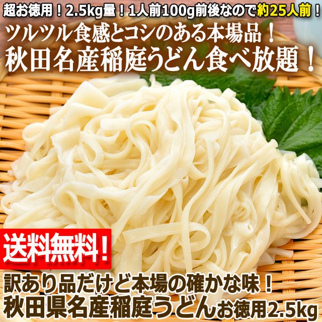 訳あり品だけど本場の確かな味!秋田県名産稲庭うどんお徳用2.5kg 25人前茹でる 日本三大うどん 乾麺 ざるうどん ツルツル食感 コシ グルメ