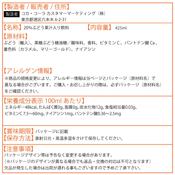 ミニッツメイド Qoo(クー) 白ぶどう 425ml 24本 (24本×1ケース) PET 果汁 安心のメーカー 送料無料