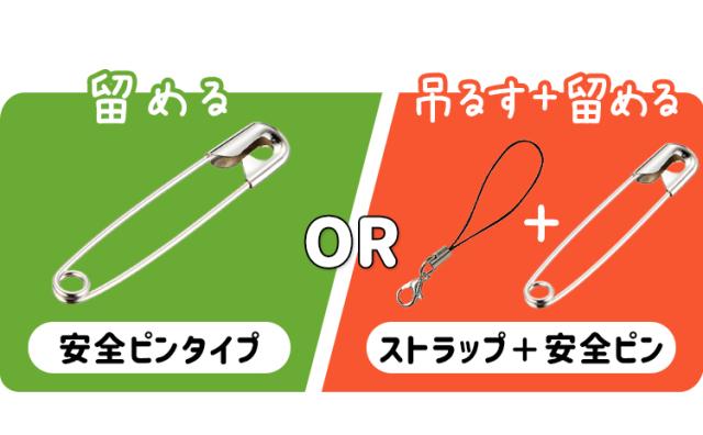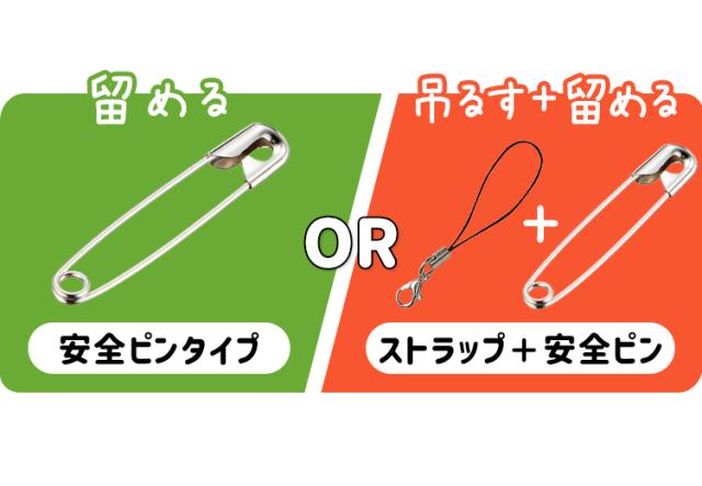 - タイプ:安全ピンタイプ / ストラップ + 安全ピンタイプ