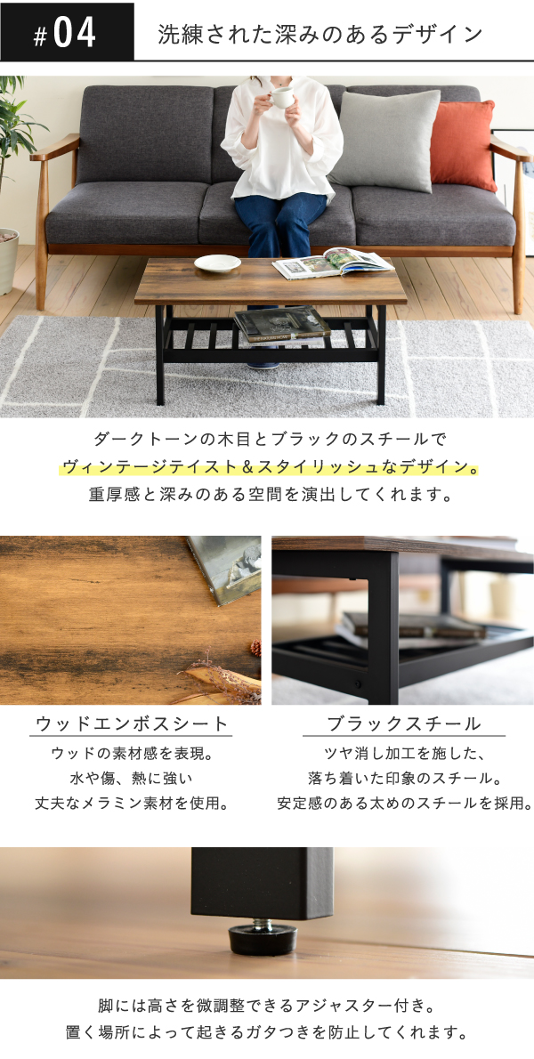 ローテーブル ELVIS(エルヴィス) KKS-0018 幅80cm センターテーブル リビングテーブル 収納付き テーブル 机 作業台 デスクワーク 木製 コンパクト おしゃれ インダストリアル