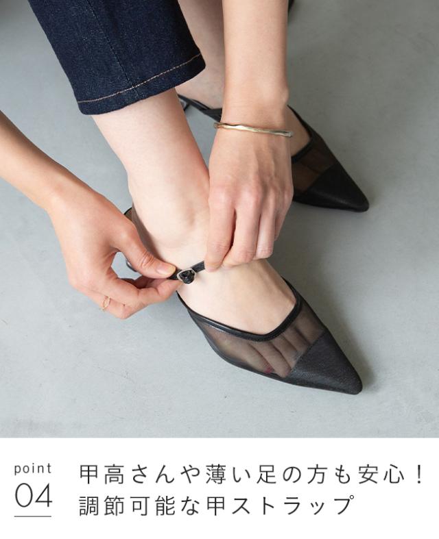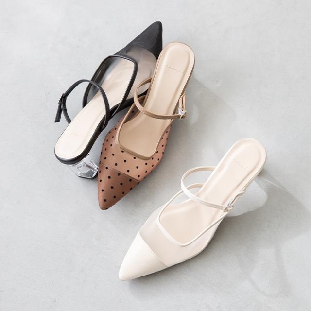 ポインテッドトゥがトレンドに復活!透け感あるデザインに、更にフェミニンさをプラス。