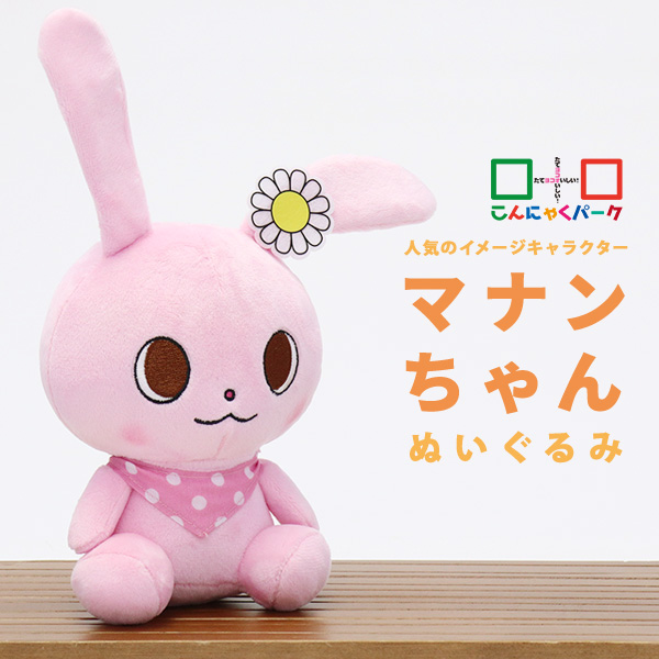 | こんにゃくパークの人気イメージキャラクター「マナンちゃん」のぬいぐるみ。マナンちゃんは5歳の可愛いうさぎの女の子♪サイズ感は大きすぎず小さすぎず、お子様でも簡単に持ち運べ、お部屋や寝室のおともにぴったりです。 |