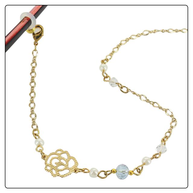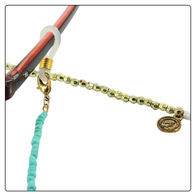 メガネやサングラス、老眼鏡等のかけ外しにとても便利でおしゃれな、グラスチェーンです。