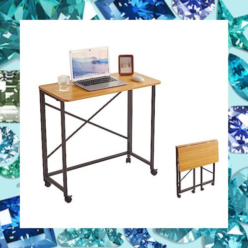Aibiju 折りたたみデスク 幅80×奥行40×高さ75/77cm アジャスター付き キャスター付き pcデスク ワークデスク 木の色/黒 YD-TM002N