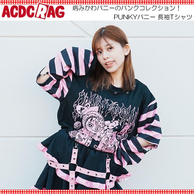 ACDC RAG エーシーディーシーラグ PUNKYバニー ロンT Tシャツ 長袖 原宿 原宿系 ファッション うさぎ 病み 病みかわ 地雷 地雷系 jr-537-127 ブラック/ピンク