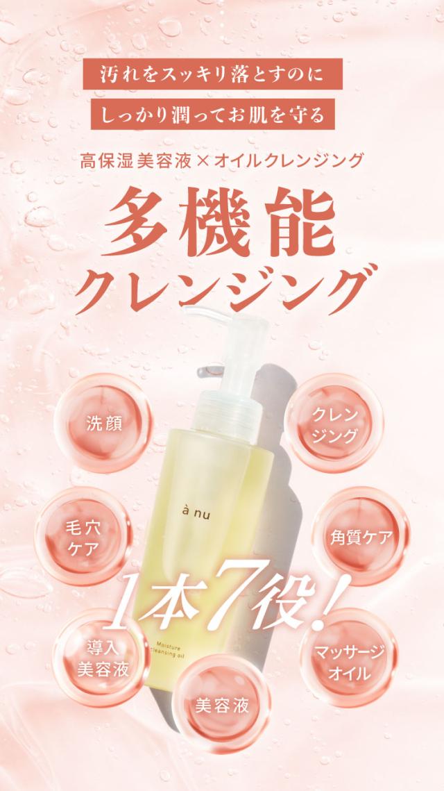 anu アニュ モイスチャークレンジングオイル 115ml クレンジングオイル 保湿 美容 成分配合 W洗顔不要 ダブル洗顔不要 多機能クレンジング 洗顔 メイク落とし 化粧落とし 美容液 スキンケア エイジングケア まつエク ウォータープルーフ オールインワン【送料無料】
