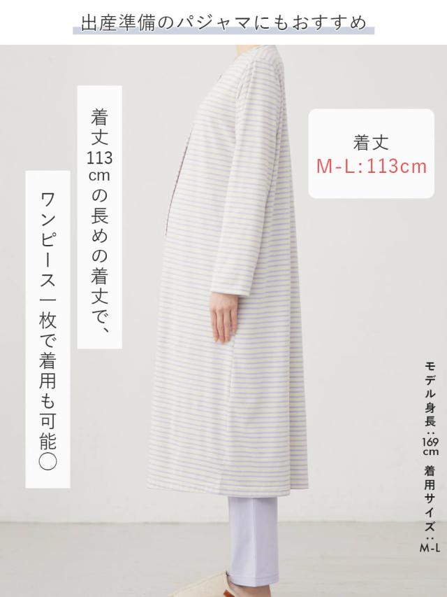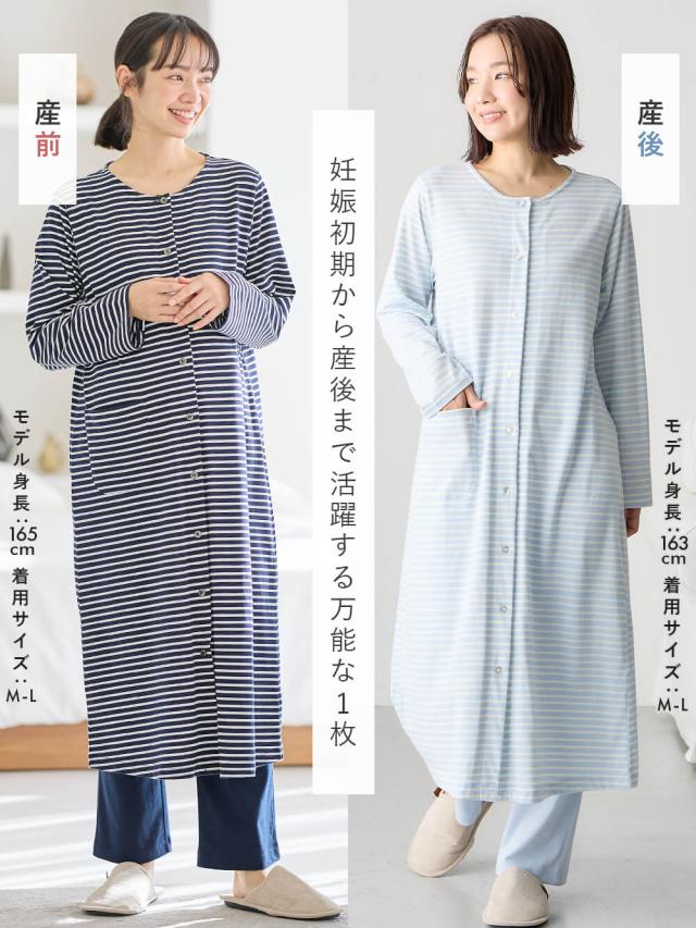 綿混ボーダー柄ロングワンピースパジャマ マタニティ・授乳パジャマ【出産後も長く使える】fairy(フェアリー)