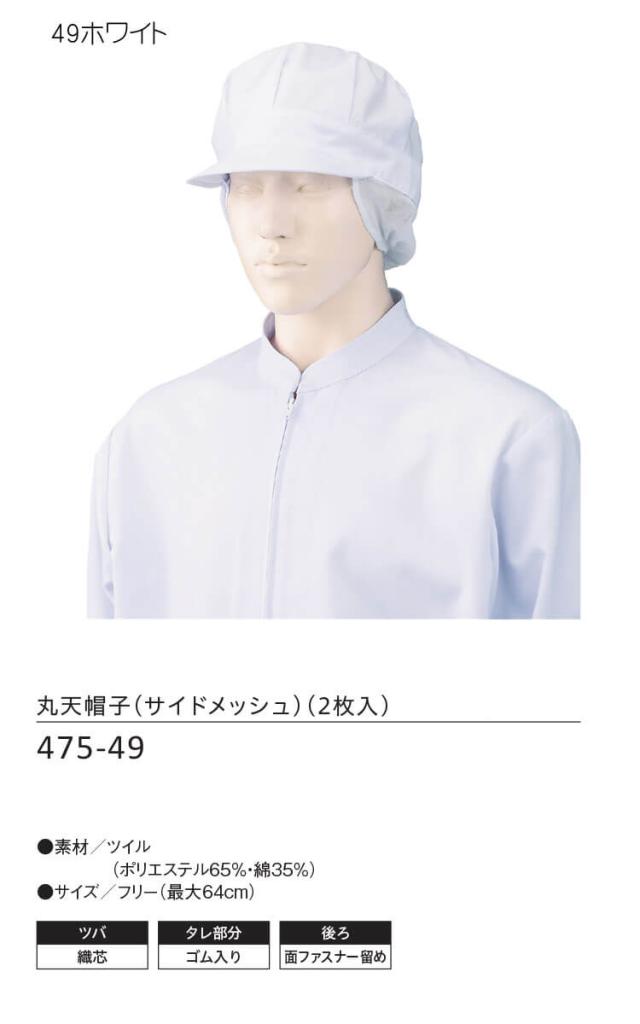 食品工場白衣 丸天帽子 サイドメッシュ 475-49 2枚入 カゼン KAZEN フードファクトリー 衛生帽子 制服 ユニフォーム