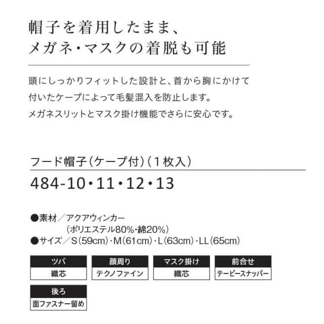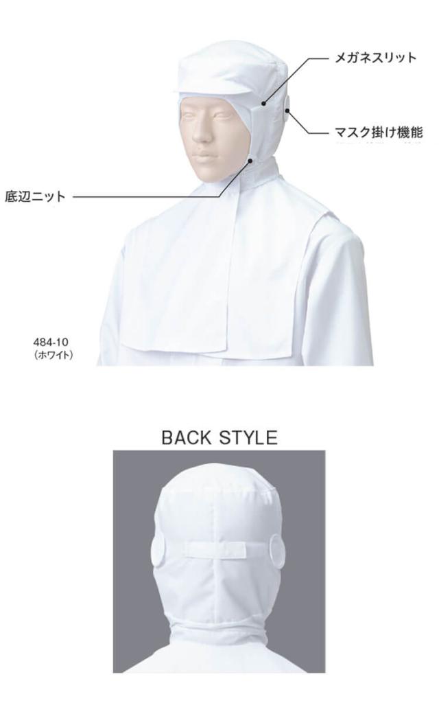 食品工場白衣 フード帽子ケープ付 ツバ有 484-10 カゼン KAZEN フードファクトリー 衛生帽子 制服 ユニフォーム