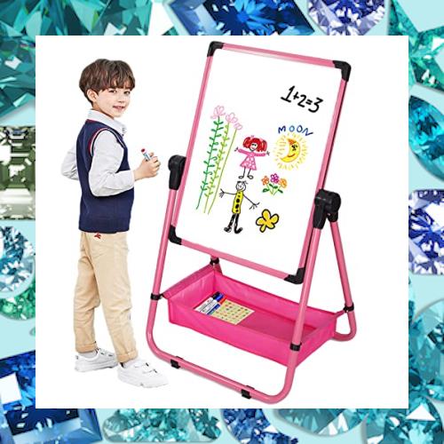 お絵かきボード 子供用 黒板 ホワイトボード イーゼル 鉄製 折りたたみ式収納 収納袋付き高さ調節可能63-107cm 両面使用 落書き 黒板/ホ