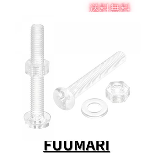 ◆商品名:uxcell M5 x 40mm プラス小ネジ ナット ナットと平ワッシャー付き プラスチック PC皿頭小ボルト 透明 20セット