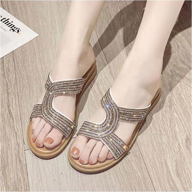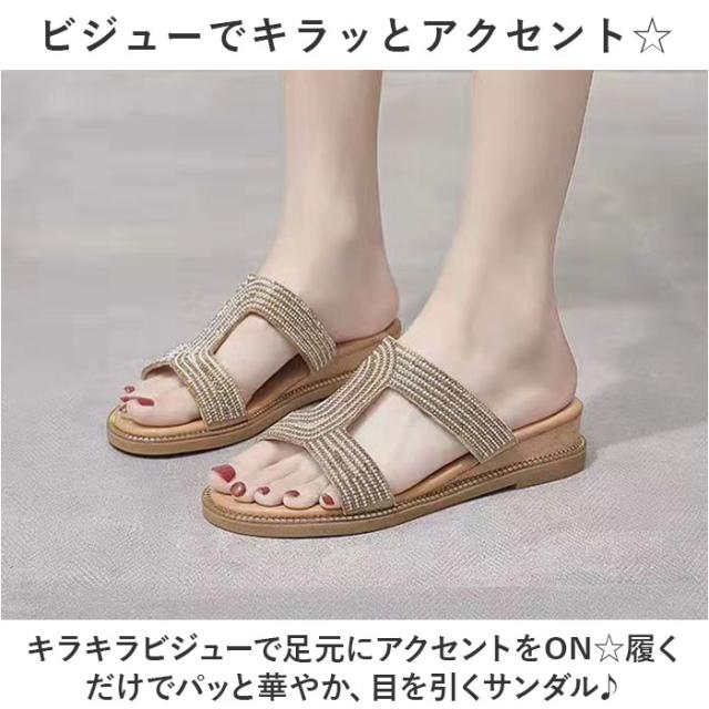 サンダル レディース かわいい 通販 ヒール ローヒール サマーサンダル 夏 夏用 つっかけ ぺたんこ おしゃれ 靴 くつ クツ ビジュー キラキラ シューズ きれいめ カジュアル 大人
